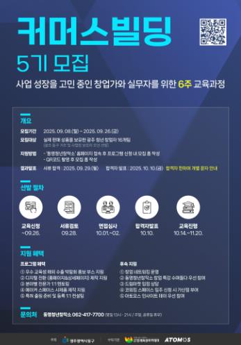 커머스빌딩 5기 프로그램은 10월 14일부터 6주간 오프라인 교육으로 운영되며, 실전 중심의 커리큘럼과 사후 지원을 통해 지역 청년 창업가들이 사업 역량을 강화할 수 있도록 도울 예정이다.
