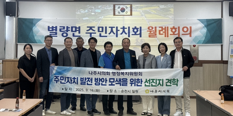 조영미 위원장은 “주민이 주인이 되는 풀뿌리 민주주의는 결국 자치회 운영의 성패에 달려 있다”며 “이번 순천시 견학은 나주시가 주민자치회로 성공적으로 전환하는 데 필요한 구체적 과제와 실질적 운영 방안을 확인한 뜻깊은 자리였다. 앞으로도 시민과 함께하는 자치 기반을 강화해 나주시의 주민자치 모델을 정립하겠다”고 소감을 전했다.