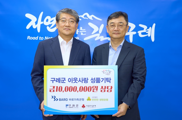 한편, 이번 기탁은 지난 2022년 구례군과 바로저축은행의 1사 1촌 상생 협약에 따른 것으로, 취약계층 주민의 생활복지 향상을 위한 사회공헌 활동의 일환이다. 바로저축은행은 협약에 따라 5년간 총 1억 원 기탁을 약정했으며, 이번 기탁으로 현재까지 누적 기탁액은 8천만 원에 이른다.