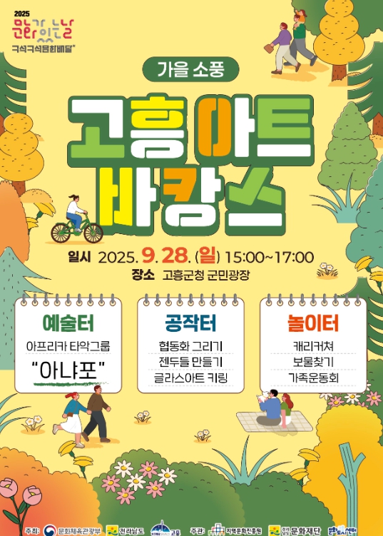 이번 ‘고흥아트바캉스’는 ‘가을 소풍’을 주제로, 군민 누구나 즐길 수 있는 다양한 공연과 체험 프로그램으로 마련된다.