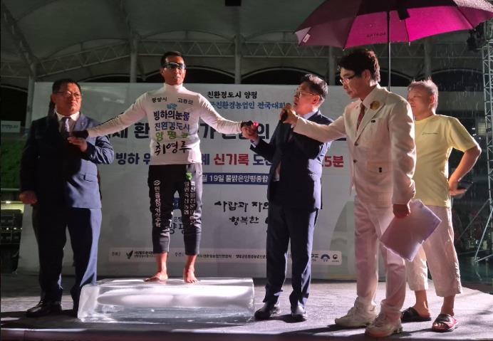 조승환은 행사 방문객들이 지켜보는 가운데 얼음 위에서 맨발로 5시간 25분을 버텨, 지난 8월 10일 중국에서 세운 자신의 기록(5시간 20분)을 경신했다.