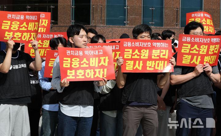 현재 금감원 직원들은 금감원과 금융소비자원을 분리하는 방안에 강하게 반발하고 있다. 이번 정부조직개편안은 금융감독기구를 재경부에 예속시키는 결과를 낳게 될 것이라는 주장이다. 금감원 내부에서는 금융감독과 금융소비자 보호 기능을 분리하면 오히려 소비자 보호 기능이 약화될 가능성이 높다는 지적을 내놓고 있다.