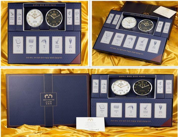 이번 추석 선물은 대통령 시계, 전국 8도 수산물, 우리 쌀로 구성됐다.
