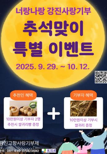 이번 이벤트는 고향사랑기부제도 3년차에 추석 연휴 기간 강진 고향사랑 기부자와 군민에 대해 감사의 마음을 전하기 위해 마련됐다.