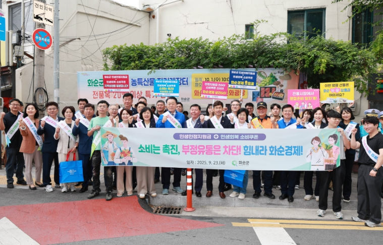이날 행사에는 구복규 군수를 비롯해 화순군의회, 화순교육지원청, 화순경찰서, 화순소방서 등 유관기관·단체장과 직원 등 100여 명이 참여해 주민들에게 민생안정지원금과 민생회복 소비쿠폰에 대해 홍보하고, 전통시장 및 지역 상점 이용을 적극 권장했다.
