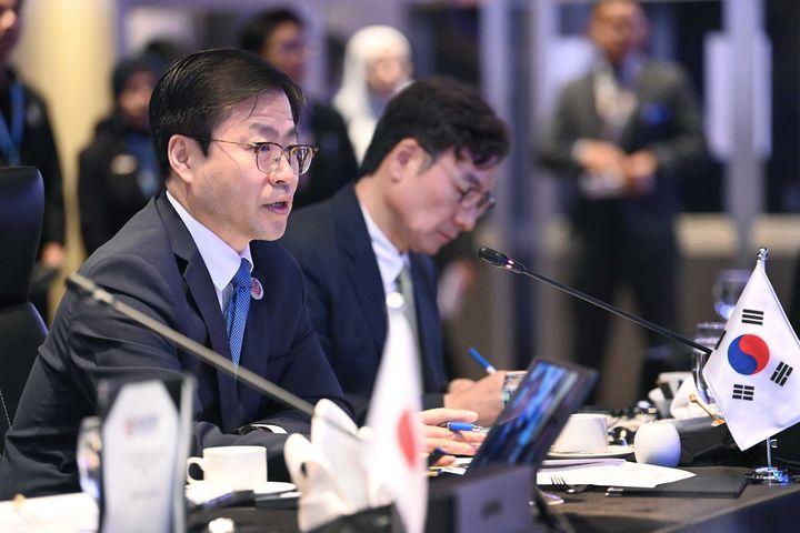 무토 요지 일본 경제산업성 대신과는 풀어사이드 회의를 통해서 만났고, 한일간 다양한 분야의 전략적 이해가 일치하는 만큼 향후 무역과 투자 확대 방안을 협의하기로 했다.