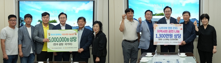 기탁식에는 윤병태 나주시장과 김재영 전국한우협회 나주지부장과 임원진, 조억기 대한한돈협회 나주지부장과 임원진 등이 참석했으며 기탁된 물품은 지역 내 사회복지시설 및 다자녀가정 등 취약계층에 전달될 예정이다.