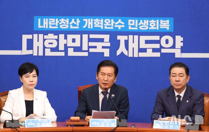 정 대표는 이날 오전 국회에서 열린 최고위원회의에서 "'조희대 청문회'에 조희대가 불출석한다고 한다. 불출석 사유로 헌법 제103조 법관은 헌법과 법률에 의해서 그 양심에 따라 독립해서 심판한다는 조항을 들먹이며 사법 독립을 운운하고 있다"며 이같이 말했다.