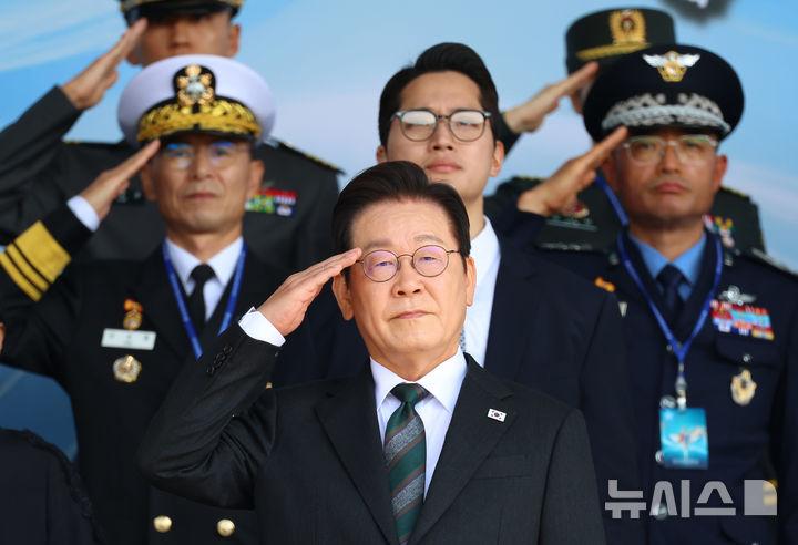 한편 이 대통령은 12·3 비상계엄 사태를 겨냥해 "일부 군 지휘관들은 군 본연의 임무를 망각한 채 최고 권력자의 편에 서서 국민을 향해 총부리를 겨눴다"며 "우리 군의 명예와 신뢰도 한없이 떨어졌다"고 비판했다.