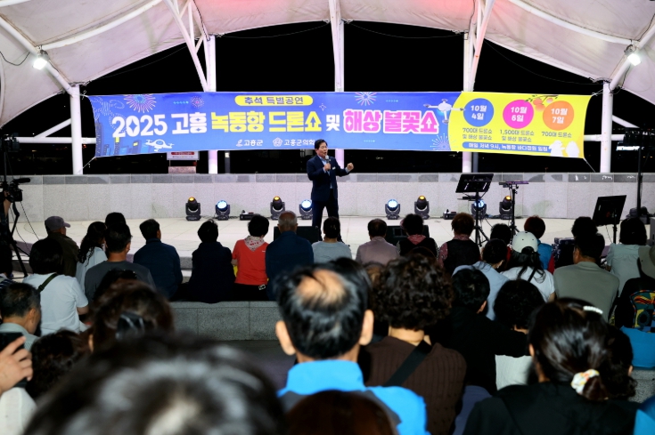 한편, 고흥군 녹동항 드론쇼는 오는 10월 25일 폐막식을 앞두고 있으며, 강우·강풍 등 기상 여건에 따라 일정이 변경될 수 있다.