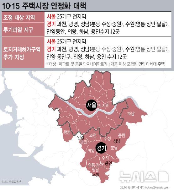 정부는 조정대상지역 및 투기과열지구를 기존 서울 강남3구(강남·서초·송파)와 용산구 외에 서울 25개 자치구 전체와 경기도 12개 지역까지 규제 대상으로 확대했다. 경기도에서는 올해 집값 상승세가 가팔랐던 과천시와 성남시(분당·수정·중원)를 비롯해 ▲광명시 ▲수원시(영통·장안·팔달) ▲안양시(동안구) ▲용인시(수지구) ▲의왕시 ▲하남시가 대상이다.