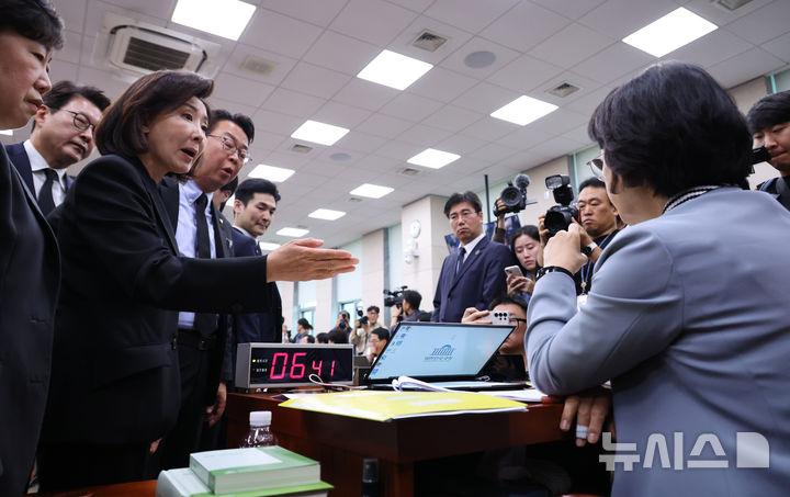 나 의원은 법사위 증인 신청과 관련된 질문에 "오늘 김현지 부속실장, 설주완 변호사, 최기상 의원을 증인으로 신청했다"며 "추미애 법사위원장은 김 실장은 운영위에서 불러야 한다고 하는데, 저희가 요구하는 것은 부속실장 또는 총무비서관으로서 업무에 관한 것이 아니라 이 대통령의 보좌관으로서 위증교사 또는 증거 인멸을 시도한 것에 대한 것"이라고 답했다.