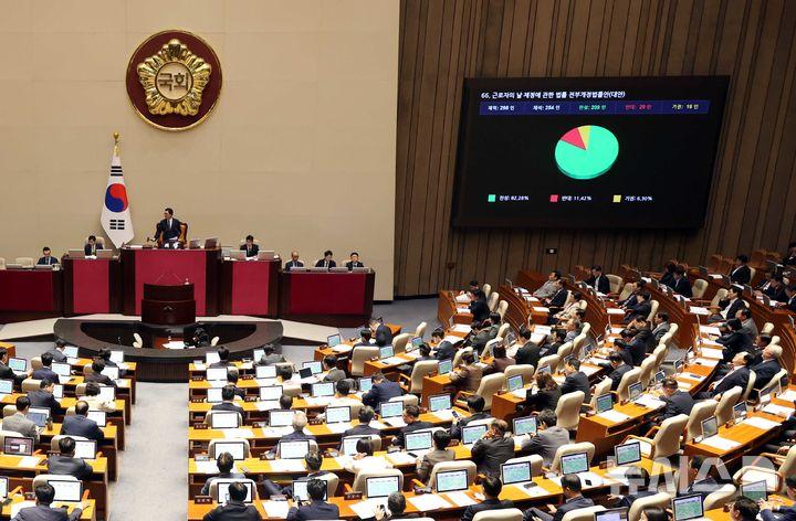 고용노동부는 26일 국회 본회의에서 노동절 제정에 관한 법률 등 노동부 소관 8개 법률안이 의결됐다고 밝혔다.