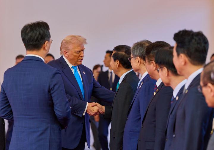 트럼프 대통령은 이 자리에서 이 대통령의 환대에 감사를 표하고 이번 국빈 방한 일정에 만족감을 표했다고 대통령실은 전했다.