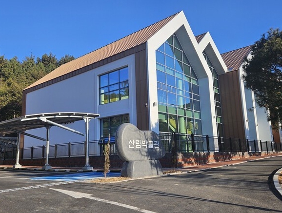 숲길을 따라 걷다 보면 단풍에 물든 나무 사이로 백운산 산림박물관이 모습을 드러내며, 방문객을 자연 속 배움의 공간으로 안내한다.
