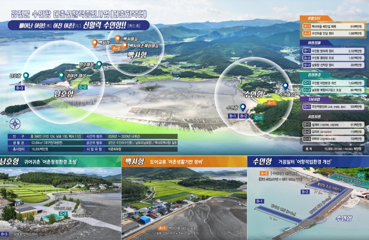 2026년 강진군 수인항 어촌신활력증진사업은 향후 4년간 국비 70억원을 포함한 총 100억원의 사업비가 투입된다.