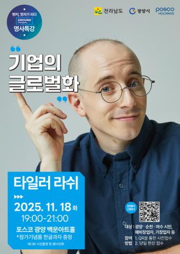 이화엽 미래산업국장은 “타일러 라쉬의 강연은 창업을 준비하는 청년들에게 세계 시장을 향한 통찰력과 영감을 주는 좋은 기회가 될 것”이라며, “광양시는 체인지업그라운드를 중심으로 창업 전 단계를 아우르는 생태계를 구축해 전남을 대표하는 창업도시로 성장해 나가겠다”고 밝혔다.