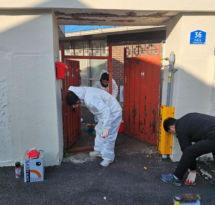 이날 활동에는 삼일동 연합청년회 회원, 삼일동 주민센터 직원, 지역주민 등 30여 명이 참여해 삼일동 통별 2개 가구의 대문 도장과 외벽 도색 작업을 진행했다.