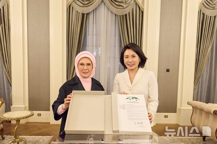 박물관 일정을 마친 김 여사는 에르도안 여사와 함께 튀르키예 국민도서관을 방문해 본격적인 친교 활동을 이어갔다. 두 사람은 도서관 내 한국코너를 둘러보며 문화·예술·교육 분야에서의 교류 확대 방안을 논의했다. 에르도안 여사는 "튀르키예 내 한류 인기가 매우 높아 한국어를 배우려는 청년들이 많다"고 소개했고, 김 여사는 "문화·예술·교육 분야에서 양국 간 교류가 더욱 확대되길 희망한다"고 화답했다.