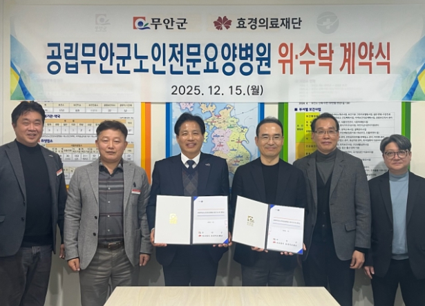 이날 계약에 따라 효경의료재단은 2026년 1월 20일부터 2031년까지 5년간 공립무안군노인전문요양병원을 위탁 운영하게 된다.
