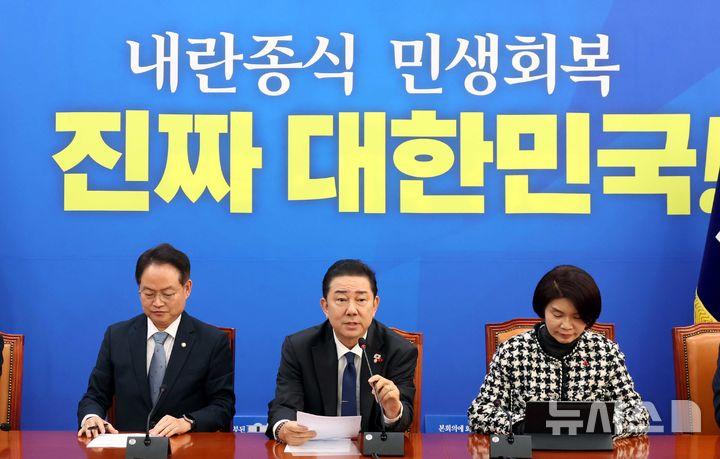 김병기 민주당 원내대표는 18일 정책조정회의에서 "한덕수·한동훈 공동정부 구상은 국정 수습이 아니라 내란 엄호였다"라며 이같이 주장했다. 그는 "당시 많은 국민이 '느닷없다', '뭘 하자는 거냐'라고 분노했다"며 "그 직감은 정확했다"라고 했다.