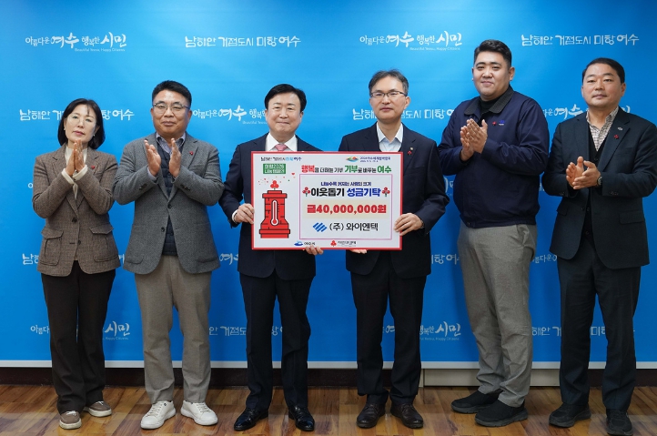 이날 전달식에는 여수시장을 비롯해 박지영 ㈜와이엔텍 대표이사와 박정열 전무이사 등이 참석했다.