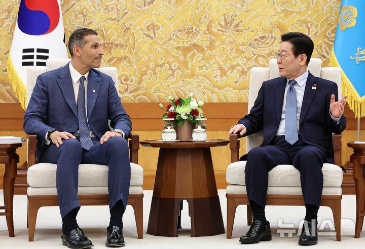 이 대통령은 "한국과 UAE가 앞으로 100년 동행하는, 우리말로 100년 해 관계로 만들기로 했는데 청장이 오셨으니 실질적인 발전을 해주시길 바란다"며 "모하메드 대통령이 빠른 시간 내 한국을 국빈 방문해서 좀 더 구체적인 이야기를 나누면 좋겠다. 조만간 한국을 국빈 방문할 거라 믿고 그때 실질 성과를 만들게 잘 준비하면 좋겠다"고 했다.