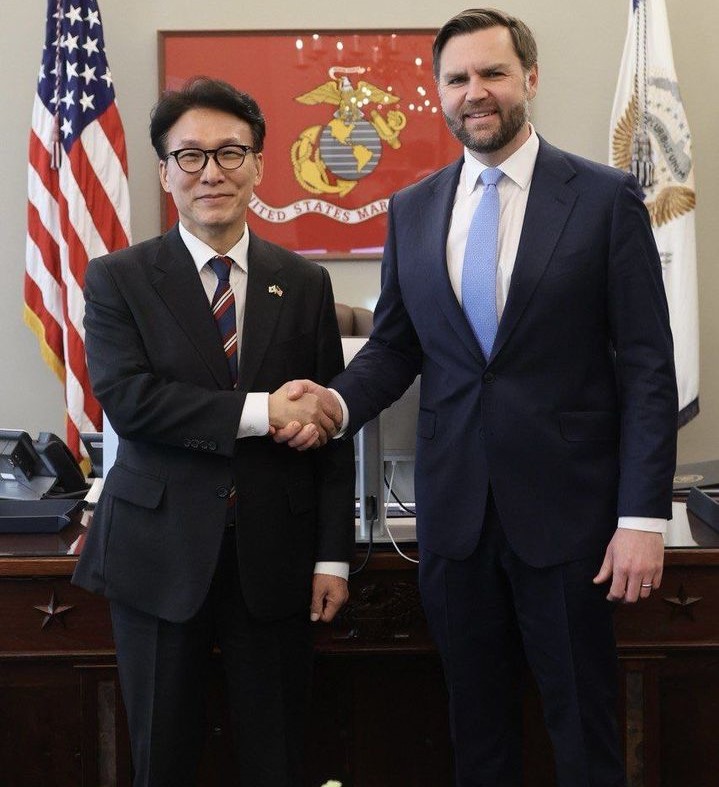 그는 "특히 조선, 핵(추진)잠수함, 원자력 재처리 문제 등에 대한 한국의 관심사항을 말씀드렸다"며 "밴스 부통령은 적극 공감했고, 미국도 한국처럼 관료적 지연이 있다면서 앞으로 구체적 기간을 정해 계획을 실현해갈 수 있도록 챙기는 것이 좋겠다고 말했다"고 했다.