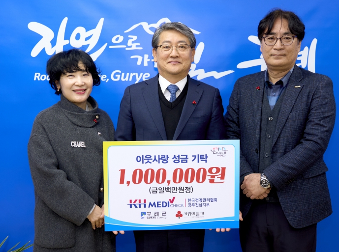 김순호 구례군수는 “지역사회를 위한 따뜻한 나눔을 실천해 주시는 한국건강관리협회 광주전남지부에 깊이 감사드린다”며 “기탁해 주신 성금은 도움이 필요한 이웃들에게 소중히 전달하겠다”고 말했다.