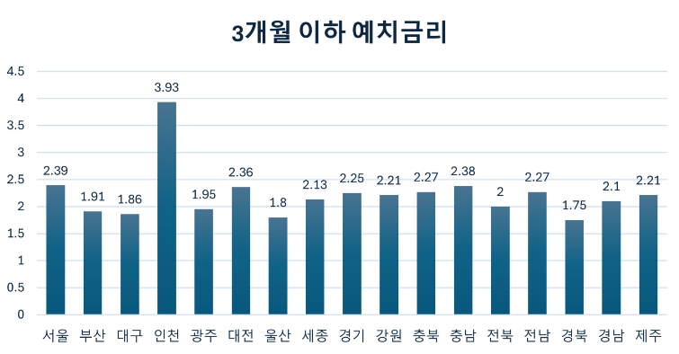 전남도는 1월 13일 금리 기준, 17개 광역지자체 가운데 ‘3개월 이하 정기예금 금리’ 2.27%로 전국 5위, ‘6개월 이하 정기예금 금리’ 2.32%로 6위를 각각 차지했다.