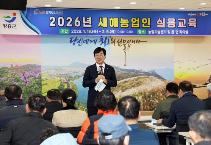 김성 장흥군수는 “이번 새해농업인 실용교육이 AI를 활용한 기후변화 대응 벼 재배기술 등 미래 농업을 대비한 핵심 영농기술을 농업인들이 이해하고 현장에 적용하는 계기가 되길 바란다”며 “앞으로도 AI와 디지털 기술을 접목한 실용 중심 교육을 지속적으로 확대해 기후변화에 선제적으로 대응할 수 있는 지속 가능한 농업 기반을 구축해 나가겠다”고 말했다.