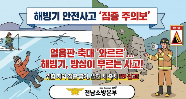 주영국 전남소방본부장은 "해빙기는 계절이 바뀌면서 우리 주변의 위험 요소가 드러나는 시기"라며 "도민 여러분의 작은 관심과 점검이 대형 사고를 막는 가장 확실한 예방책이 될 것"이라고 전했다.