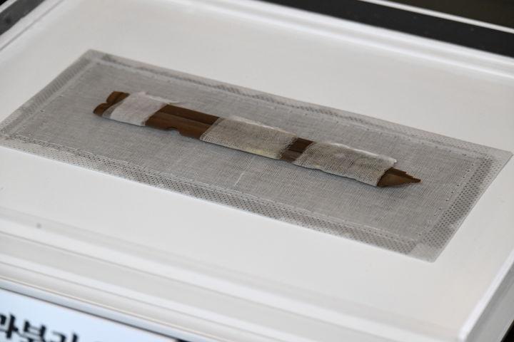이어 "이번에 출토된 목간은 수로에서만 328점, 악기가 출토된 구덩이에서 1점이 확인돼 모두 329점"이라며 "이는 국내 단일 유적에서 출토된 목간 가운데 가장 많은 수량"이라고 말했다.