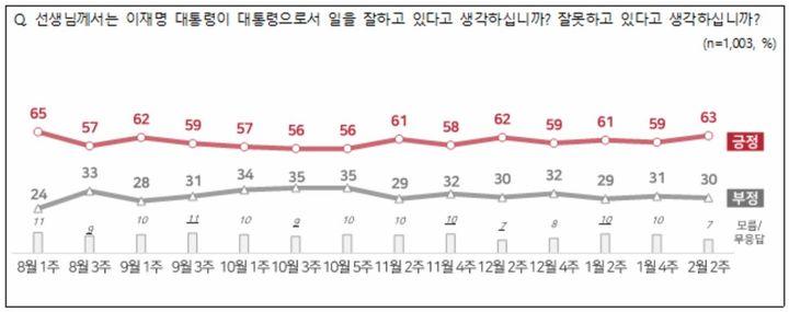직전 조사(1월 4주차)와 비교해 긍정 평가는 4%포인트(p) 올렸고, 부정 평가는 1%p 내렸다.