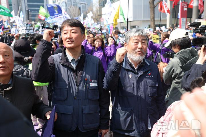 특히 김 위원장은 "(정부와) 정치적 협약을 맺고 많은 기대를 가졌지만, 최근 불확실한 태도와 약속을 지키지 않는 부분에 대해 우리 현장이 많이 분노하고 좌절을 하고 있다"며 "우리의 힘으로 이런 상황을 충분히 극복해갈 수 있고 주도할 수 있다는 확신이 있다. 그 과정에 민주노총이 함께해준다면 더 큰 힘을 발휘할 수 있을 것"이라고 강조했다.