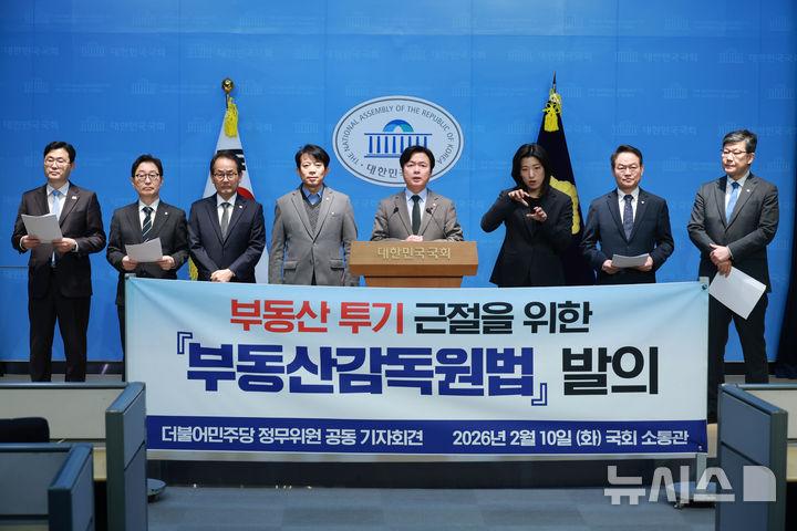 국회 정무위원회 소속 김현정 민주당 의원은 이날 오후 국회 소통관에서 정무위 여당 의원들과 함께 기자회견을 열고 "특정 부처의 경계를 허물고 범정부 차원의 강력한 컨트롤타워를 구축할 것"이라며 '부동산감독원 설치 및 운영에 관한 법률안' '사법경찰직무법'을 대표 발의한다고 밝혔다.