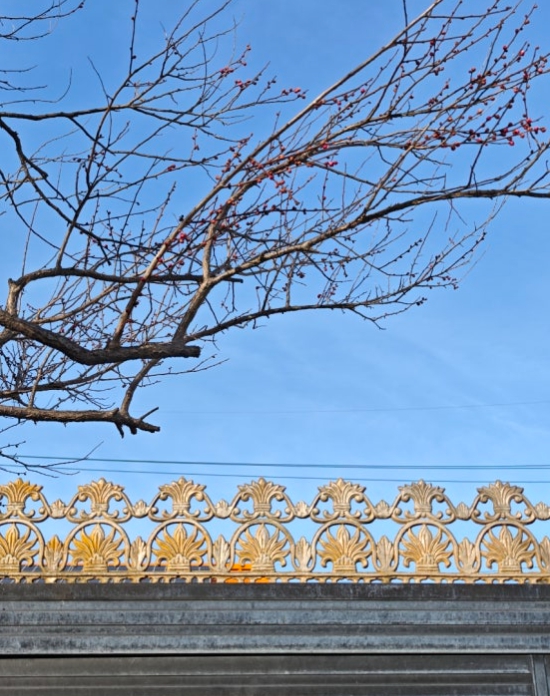 조곡동행정복지센터 인근 관사마을 골목에는 수령 80년이 넘는 홍매화가 만개해 지나가는 주민들의 발걸음을 멈추게 한다.