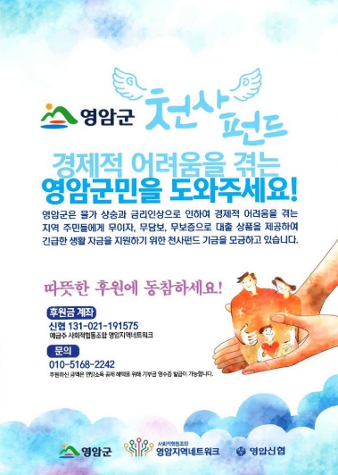 천사펀드는 지역사회의 십시일반을 기금으로 적립, 긴급 지원이 필요한 영암군민에게 생활 안정 자금을 무이자·무보증·무담보로 대출해 주는 영암형 사회적 금융이다.