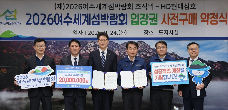 김재을 HD현대삼호 사장은 “입장권 구매약정은 지역 기업의 사회적 책임 실천이자, 국제행사 성공 개최를 위한 동반 협력의 상징”이라며 “앞으로도 2026여수세계섬박람회의 홍보를 위해 최선을 다해 돕겠다”고 말했다.