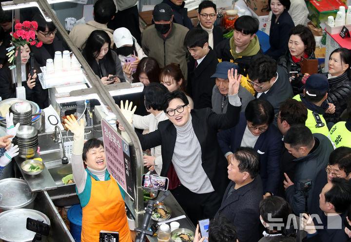 한 전 대표의 이날 서문시장 방문에는 배현진·김예지·박정훈·안상훈·우재준·정성국·진종오 의원과 더불어 김종혁 전 최고위원이 함께했다.
