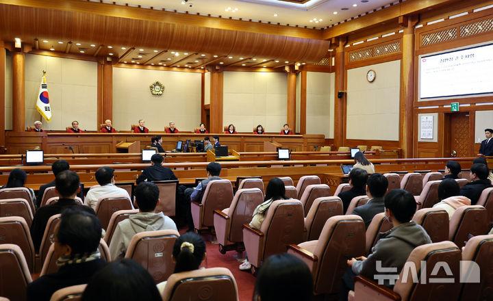 법조계에 따르면 헌재는 이날 김상환 헌법재판소장 주재로 헌법재판관 9명 전원이 참여하는 회의를 진행 중이다.