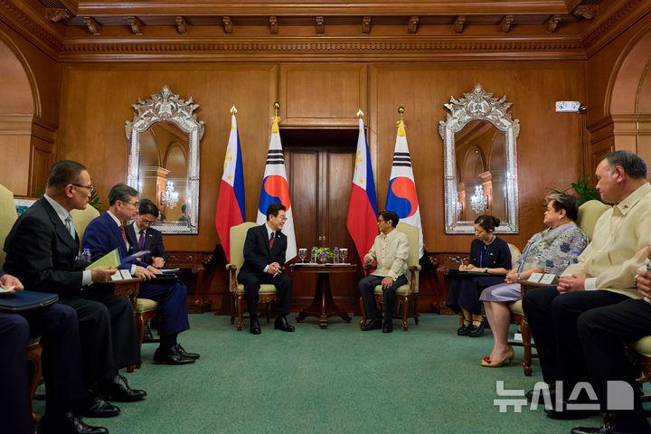 제조업 협력과 관련해선 "필리핀의 니켈·코발트 등 풍부한 핵심광물과 이를 활용하는 한국의 첨단산업은 협력 잠재력이 크다"며 "양국 협력 수요가 높은 조선, 전기·전자 등 분야에서 협력을 확대해 나가자"고 했다.
