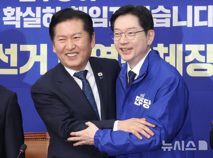 정청래 민주당 대표는 "김 후보는 이재명 정부의 5극3특 국가 균형 발전 전략을 진두지휘하며 지방 주도 성장이라는 대한민국 성장 패러다임을 그 누구보다 앞장서서 제시했던 선각자이자 지도자"라며 "국가 균형 발전 선봉장"이라고 언급했다.