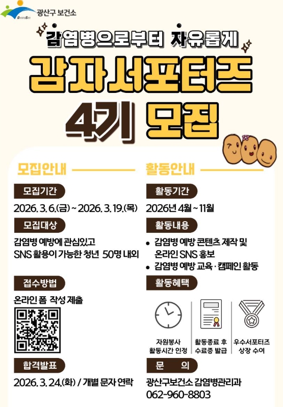 ‘감자서포터즈’는 감염병 예방을 주제로 카드뉴스, 영상 등 다양한 콘텐츠 제작과 온오프라인 활동을 진행하는 청년 참여형 홍보단이다.