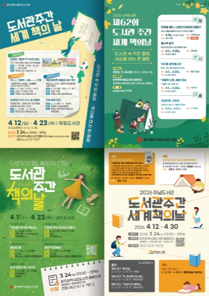 강연·체험 프로그램 참가 신청은 3월 24일부터 시립도서관 누리집 ‘문화강좌 신청’ 메뉴에서 하면 된다. 자세한 사항은 누리집을 참고하거나 무등, 사직, 산수, 하남 도서관으로 문의하면 된다.