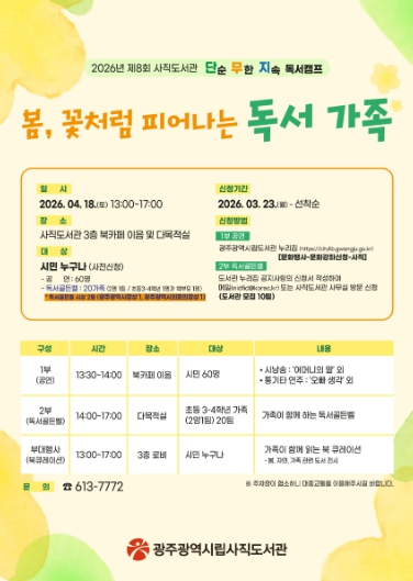 조인숙 사직도서관 관리장은 “가족이 함께 책을 읽고 퀴즈를 풀며 자연스럽게 독서의 즐거움을 경험할 수 있는 행사를 준비했다”며 “많은 시민의 관심과 참여를 바란다”고 말했다.