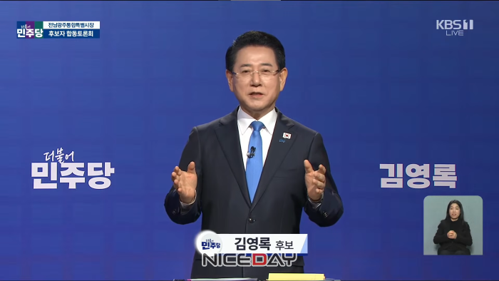김영록 민주당 전남광주특별시장 예비후보는 31일 오후 광주 KBS에서 열린 민주당 합동토론회에서, ‘역사적 출범을 앞둔 전남광주특별시가 갈등과 분열이 아닌 포용과 통합의 시대로 나아갈 수 있도록 하는 특별시장의 최적임자’임을 각인시키는 데 주력했다.