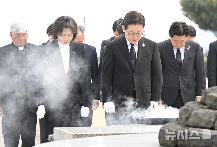 이 대통령은 "제주 4·3사건 희생자들의 안식을 빌며, 생존희생자와 유가족 여러분께 깊은 애도와 위로의 마음을 전한다"고 덧붙였다.