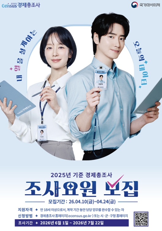 ‘2025년 기준 경제총조사’는 전국 모든 사업체를 대상으로 고용과 생산 등 산업 구조를 파악하기 위한 국가 단위 전수조사로, 5년마다 실시된다.