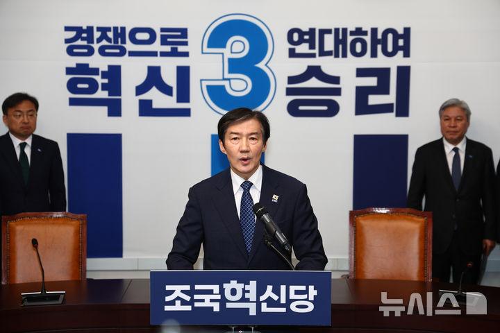 조 대표는 14일 오전 국회에서 기자회견을 열고 "6월 3일 평택을 국회의원 재선거에 출마하겠다"며 "조국혁신당의 열세 번째 국회의원이 되겠다"고 말했다.